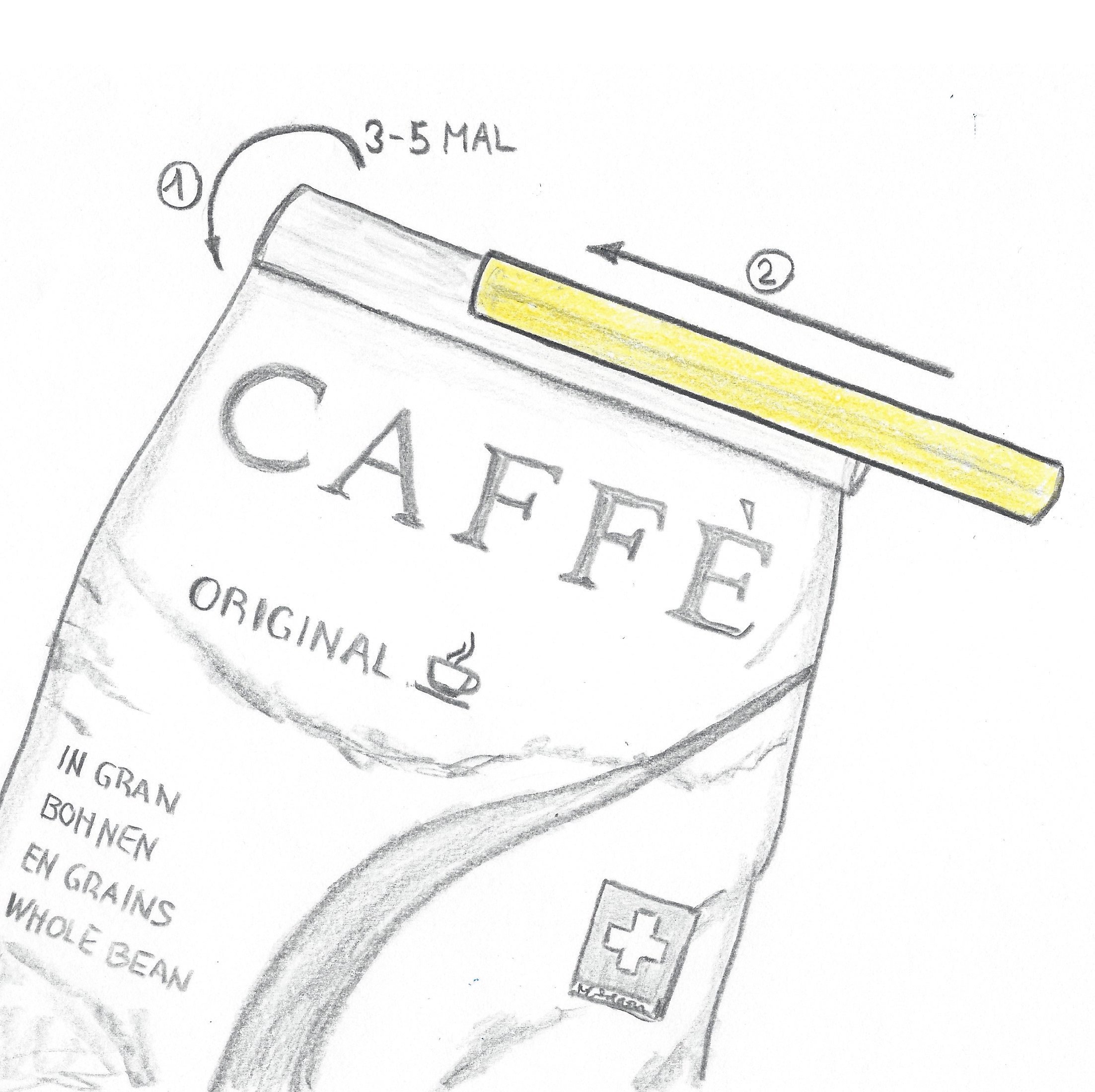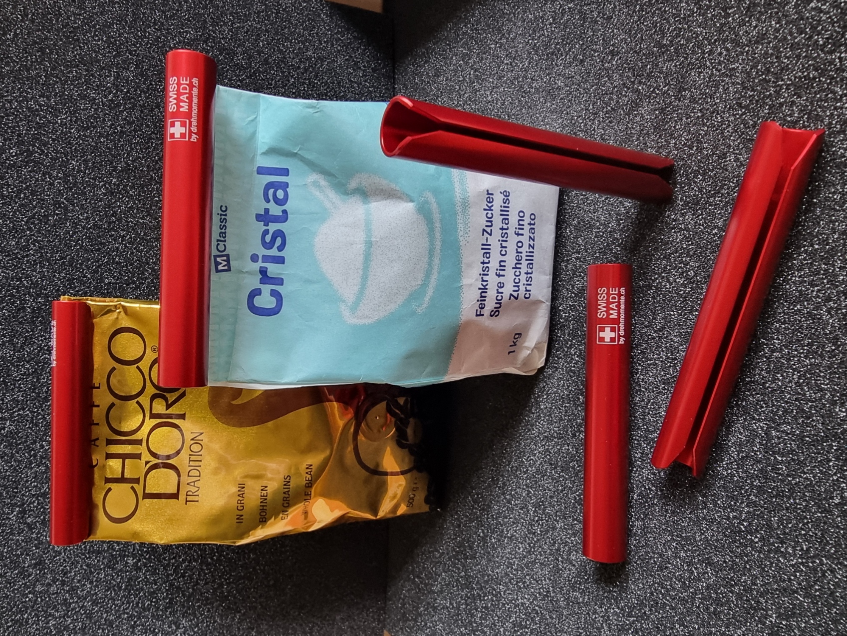 Zum einfachen Verschliessen von Kaffee- und Papierbeutel für Zucker, Mehl etc.